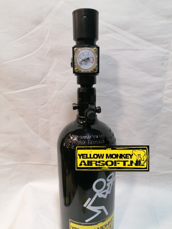 airsoft hpa set met 0,8ltr hpa fles, balystik regulator hpr hpa slang met US aansluiting